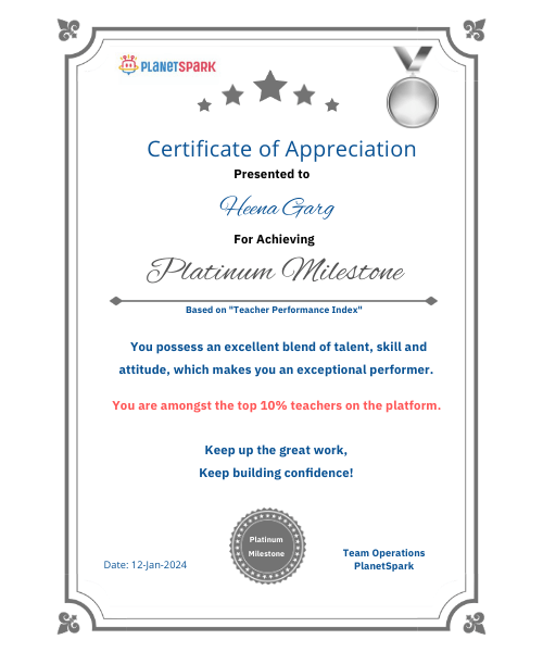 Hina Garg is an accomplished public speaking coach with over a decade of experience, dedicated to empowering young voices. A multiple award-winning orator, Hina specializes in helping children aged 6 to 14 build confidence and communication skills. Her nurturing and patient approach fosters a supportive environment where kids can express themselves freely and develop a strong foundation in public speaking. With a deep understanding of this age group, Hina tailors her lessons to make learning fun and engaging. Her goal is to inspire a lifelong love for communication, enabling children to become confident, articulate speakers in any situation.